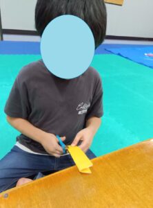 折り込んだら、はさみで細目に切り込みを入れる。