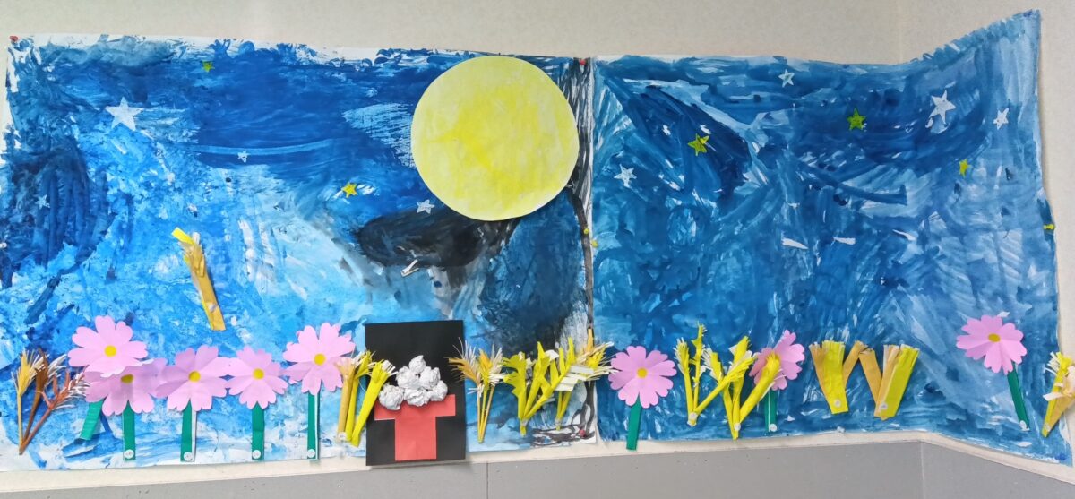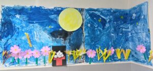 教室では「すすき」と「コスモス」で秋の風景を作ってみました。