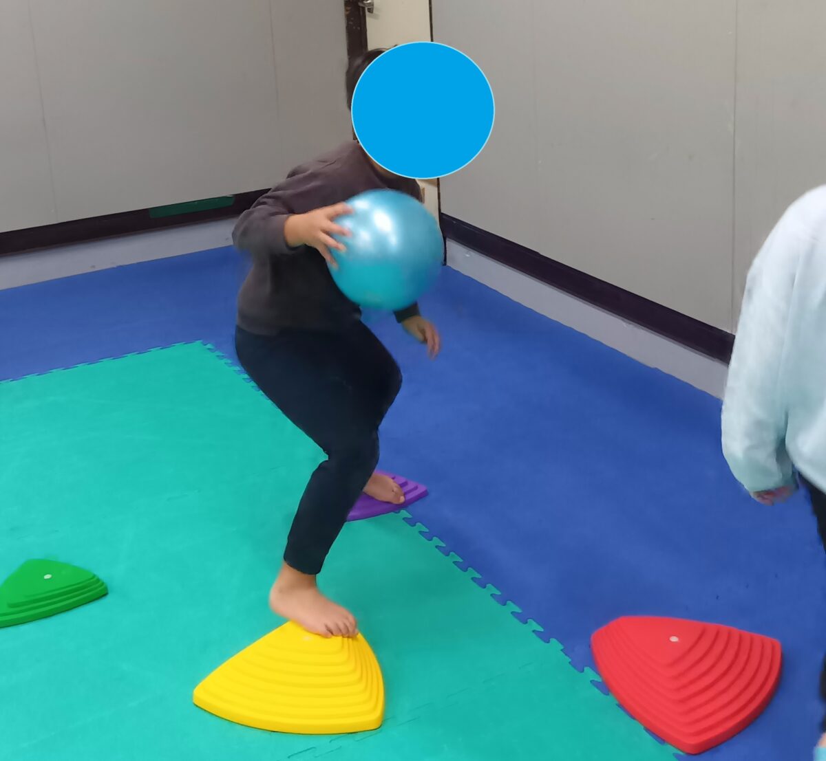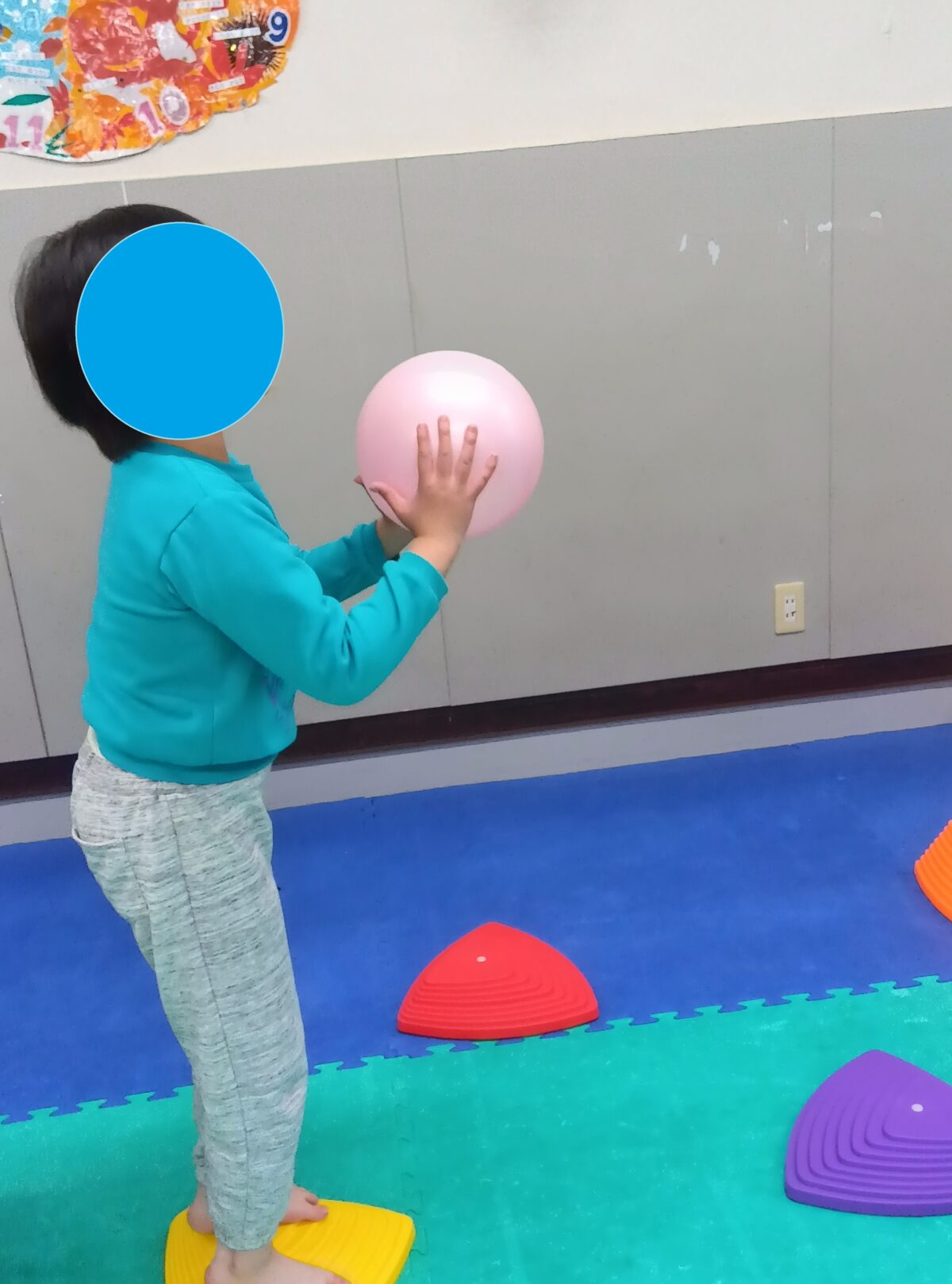 次は、バランスパッドを渡りながらボールキャッチをしました!