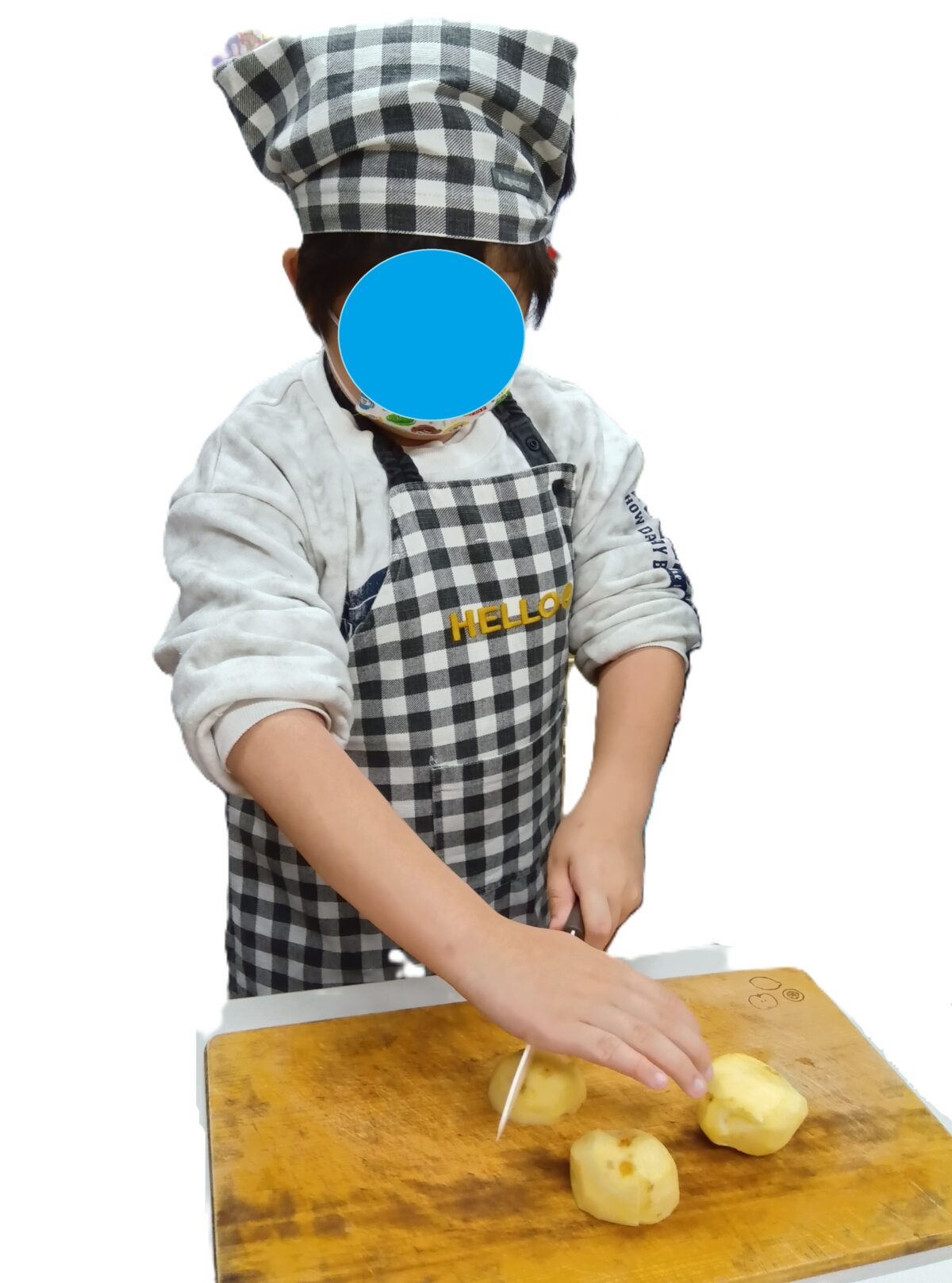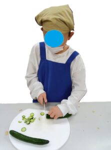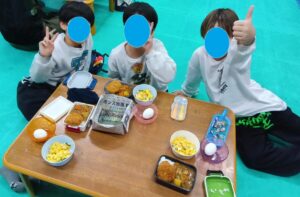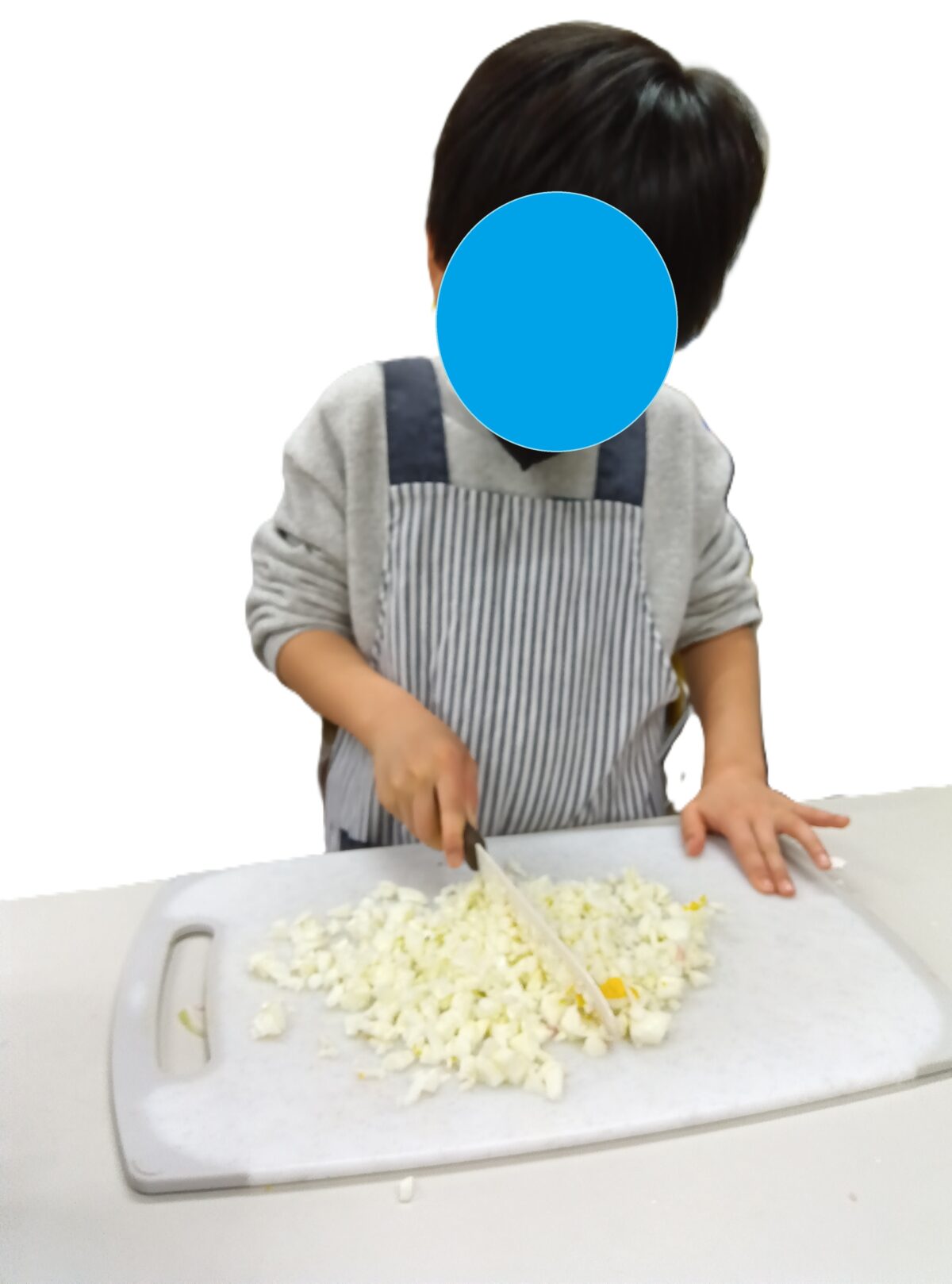 ゆで卵は自分で殻を剝きます。殻剝きは、巧緻性を養います。