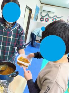 みんなで調理したカレーやサラダはおいしかったね(^_-)-☆