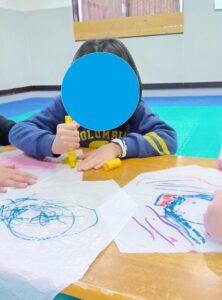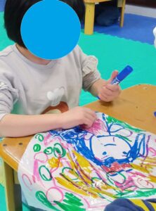 油性ペンで書きましたが💦はみ出ないように・・・色を塗ってくれました(^^)/