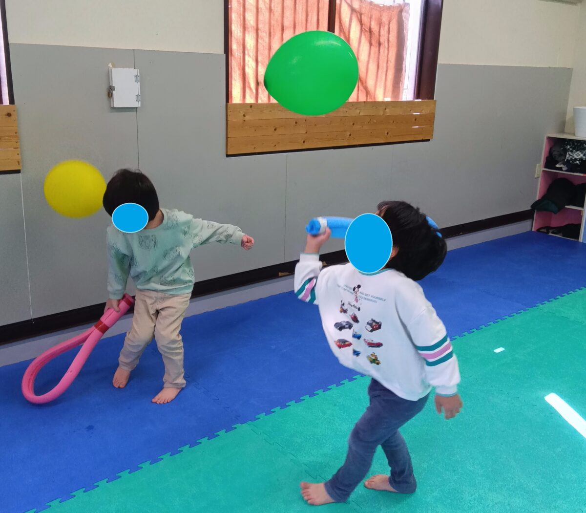 風船をよく見て打つ動作は、協調運動の一つです。