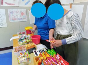 高学年は少しレベルアップ!計算しながらお菓子を選んでもらいました。