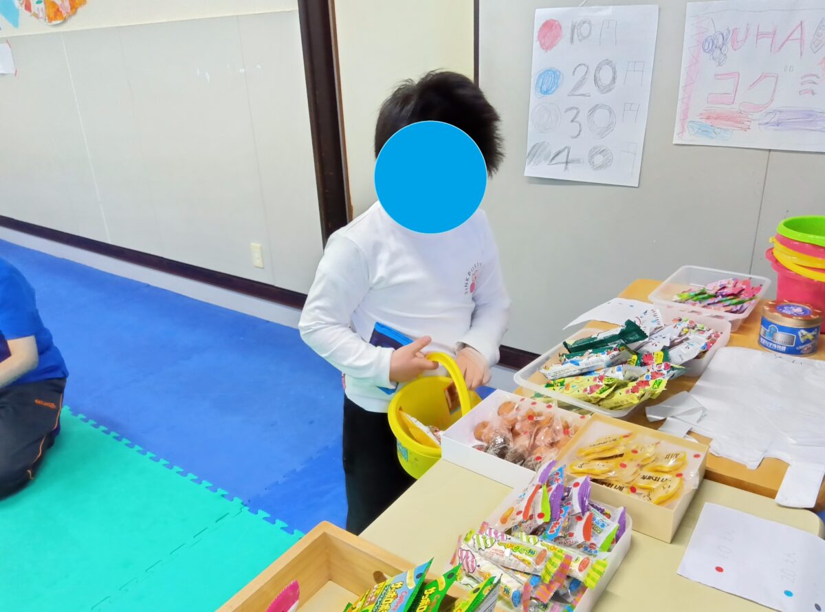 高学年は少しレベルアップ!計算しながらお菓子を選んでもらいました。