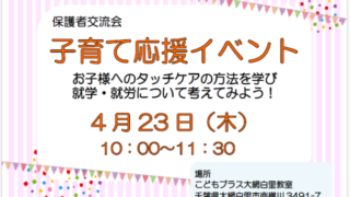 こんにちは(^^♪こどもプラス大網白里教室です。子育て応援イベントの開催が決まりました!1)タッチケアについて学んでみよう!タッチケアとは、肌の温もりを通じて心と体のふれあいを生み出し安心感や絆を育むスキンシップのケアです。触れ合うことでオ...